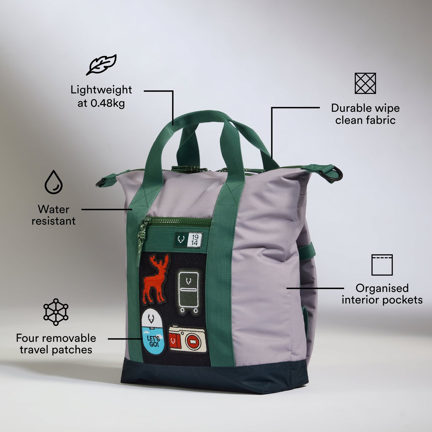 Inside, smart compartments keep books, bottles, and essentials in place for schooldays and long journeys. Outside, removable travel-inspired patches let kids personalise their backpack and make it their own - providing endless entertainment during travel’s slower moments.