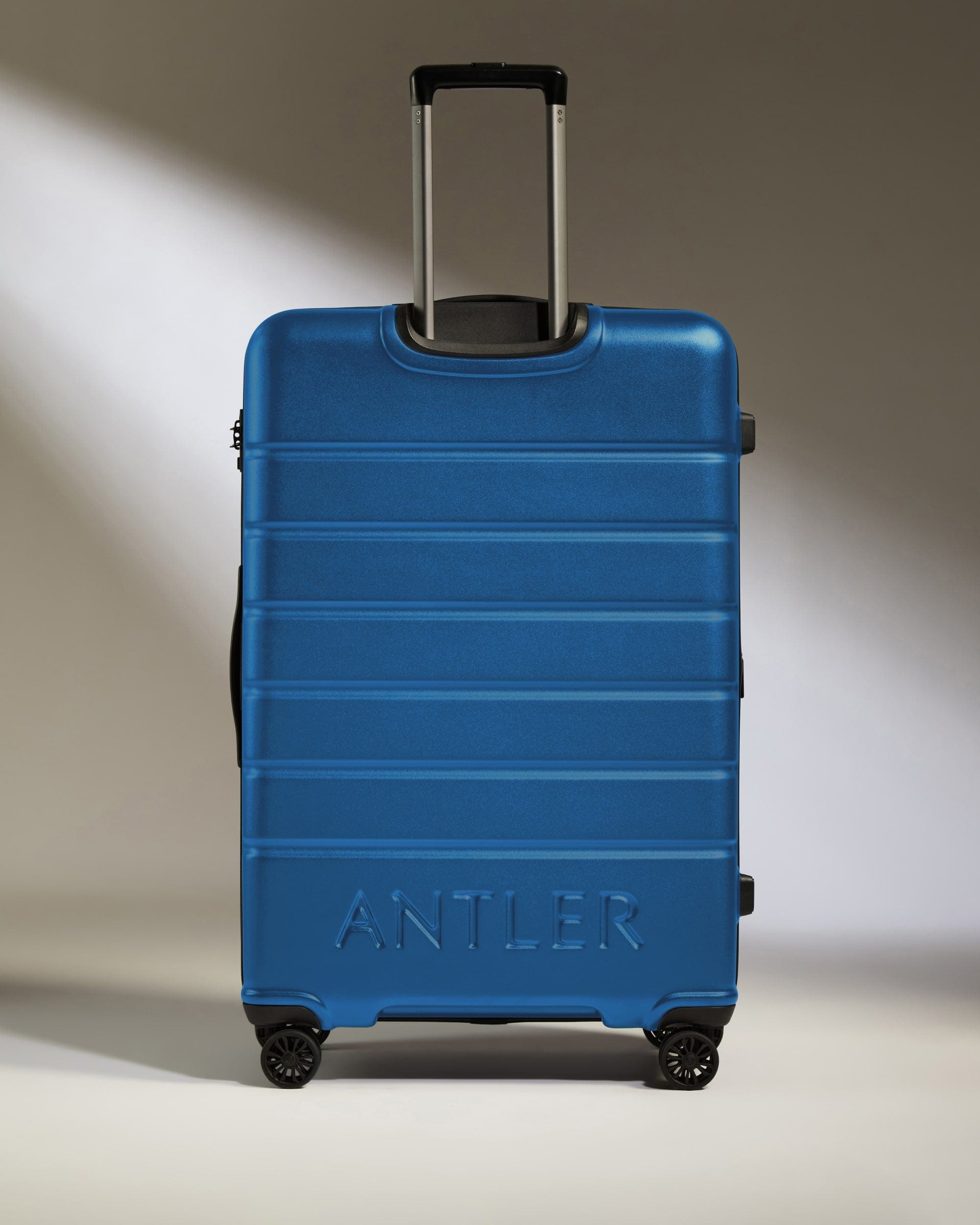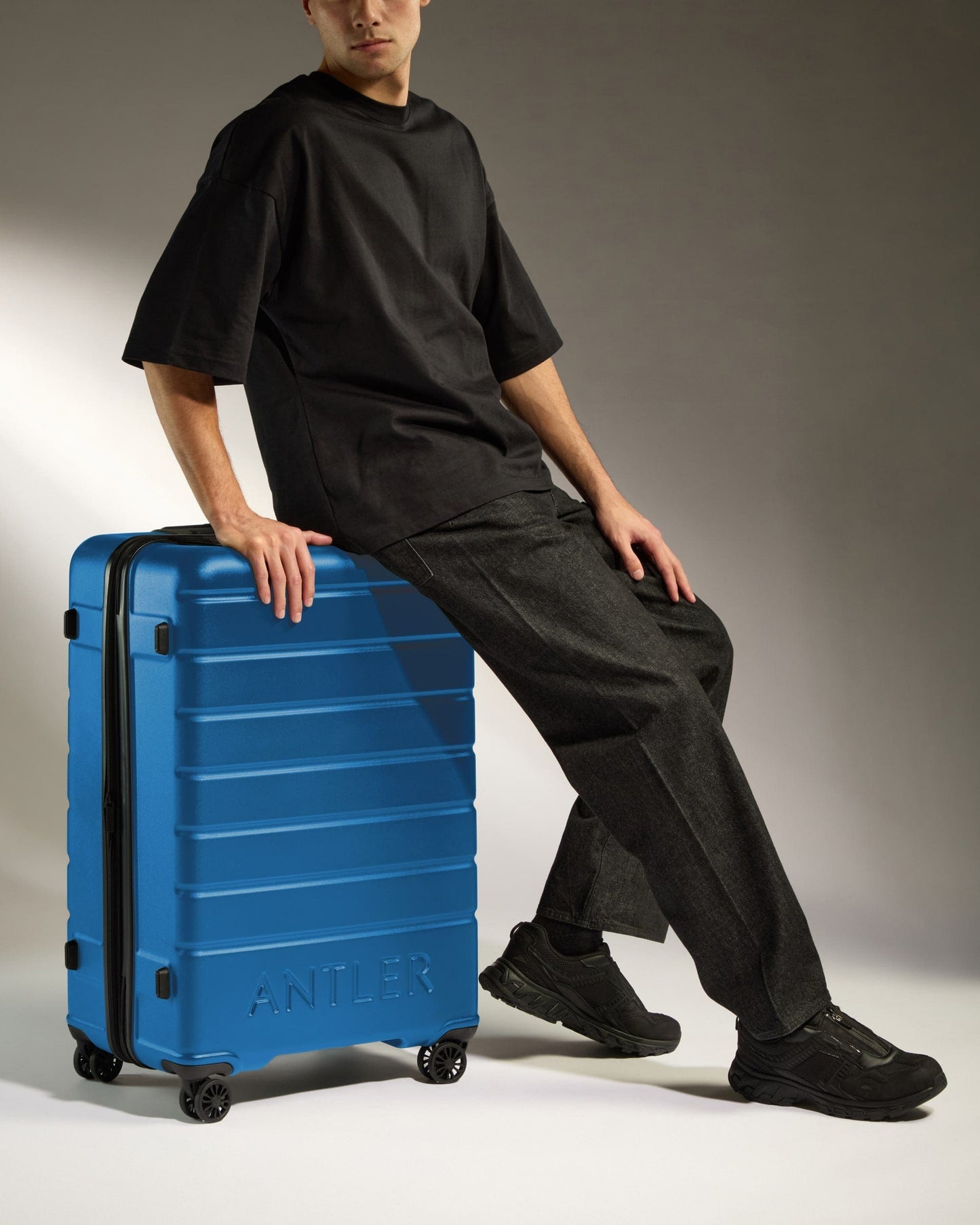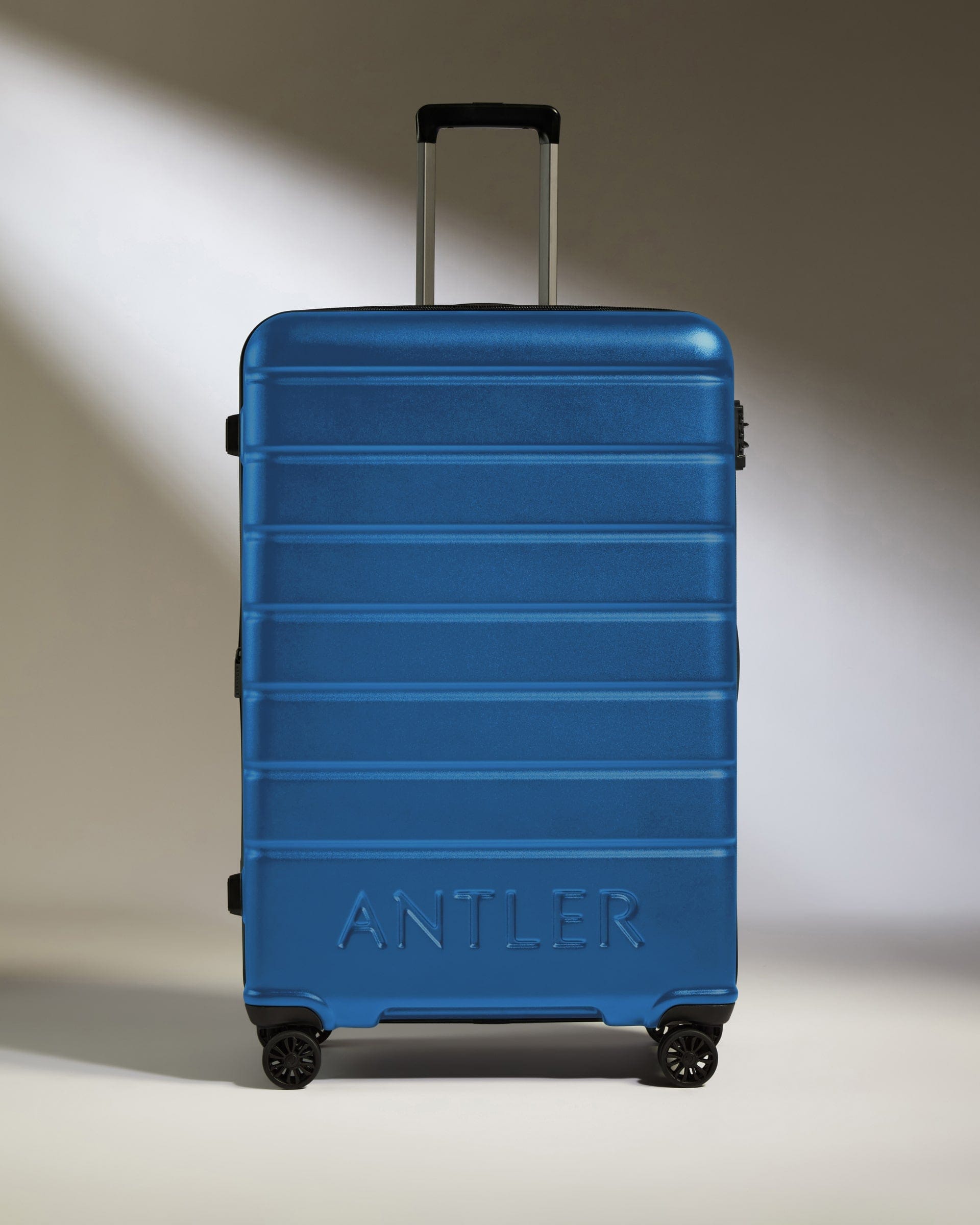 The all-new Logo case from Antler, designed to offer you a streamlined and lightweight travel companion. Purposefully designed, the hardshell suitcase boasts a minimalist design and features the iconic Antler logo on the exterior and interior. Crafted from durable polycarbonate, it prioritises functionality with an ergonomic grip handle and double spinner wheels for seamless navigation.