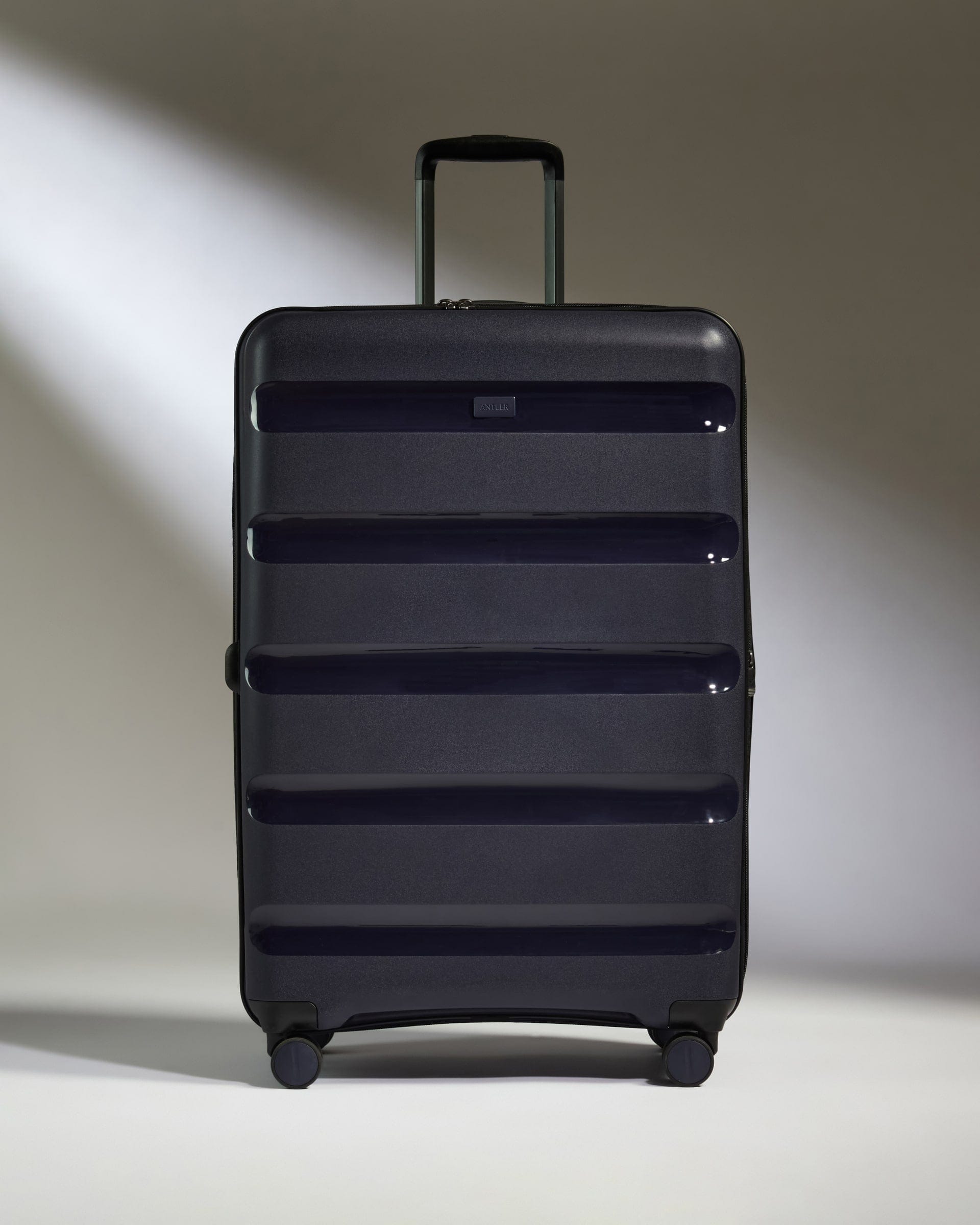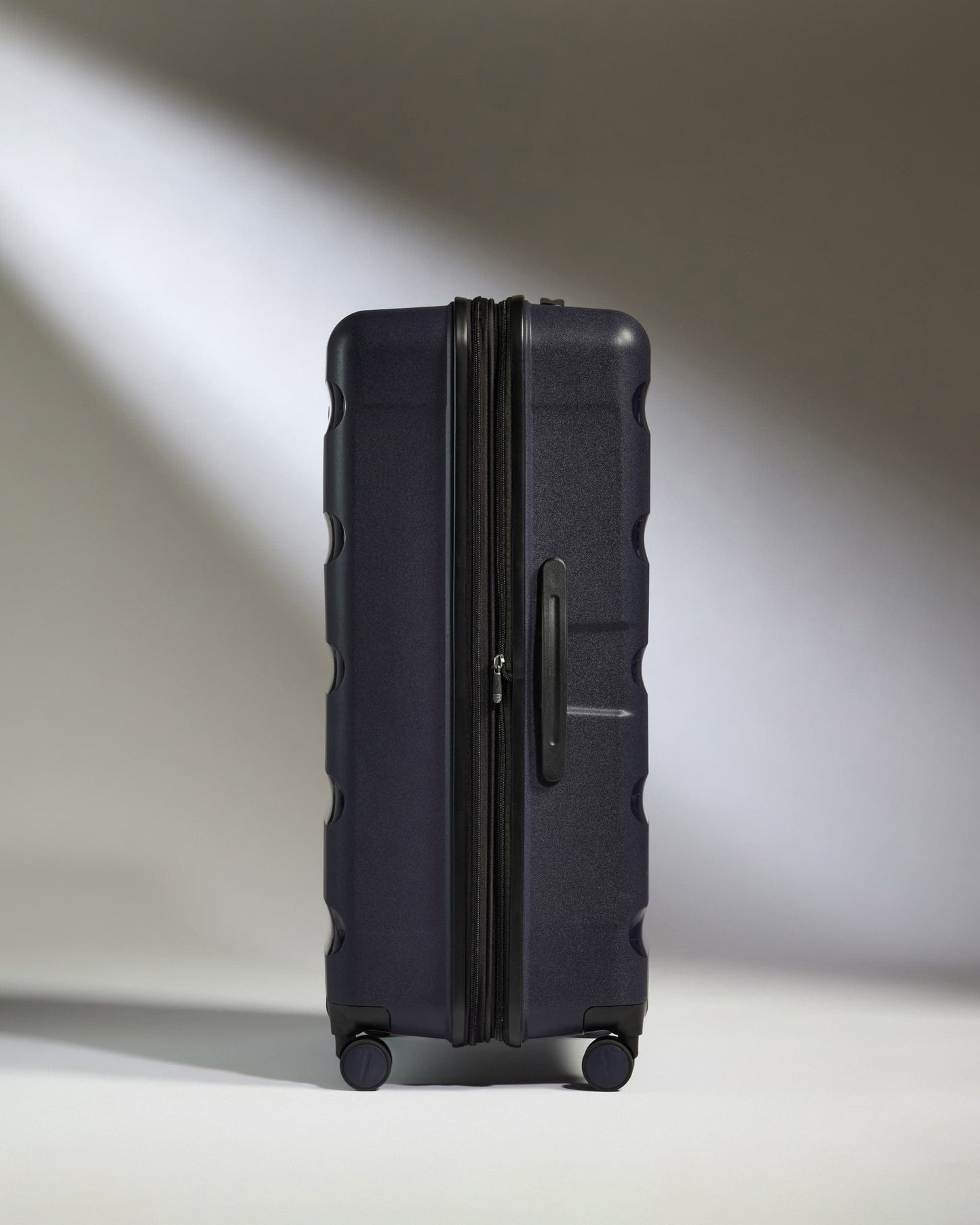 Generously sized for extended travel or shared packing, the Large suitcase has the space you need without weighing you down. Glide smoothly on four double spinner wheels, adjust the telescopic handle to suit your stride, and keep everything secure with a TSA-approved lock.