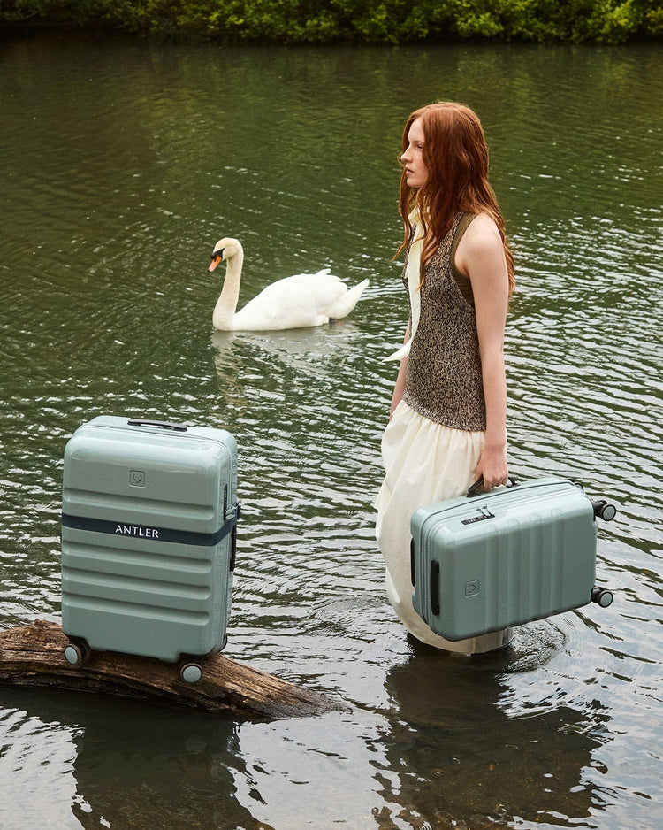 Match with the limited edition expandable cabin icon stripe suitcase in Mist Blue Gloss.